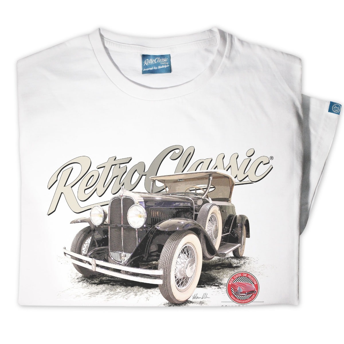 Celebrate automotive history with the RetroClassicâ„¢ 1929 Pontiac 6 Roadster T-Shirt. Featuring a vintage-inspired graphic of the iconic 1929 Pontiac 6 Roadster, this design is from a collaboration with the Malta Classic Car Museum and showcases one of their prized exhibits. Perfect for classic car enthusiasts, collectors, and fans of retro motorsport culture.