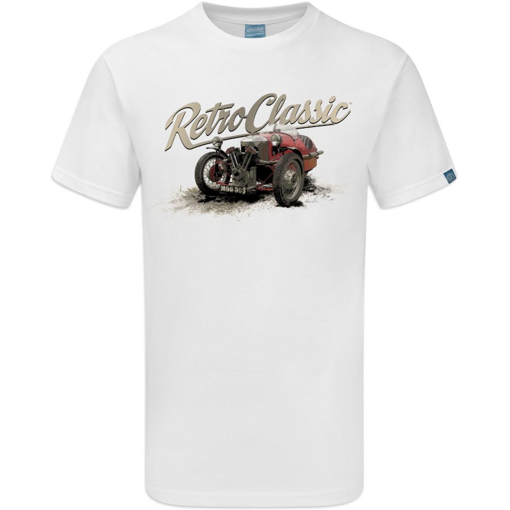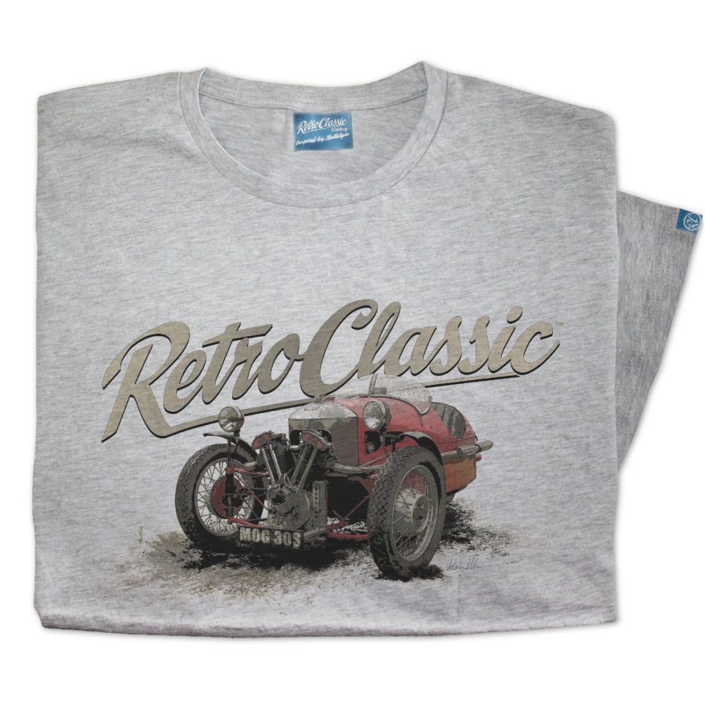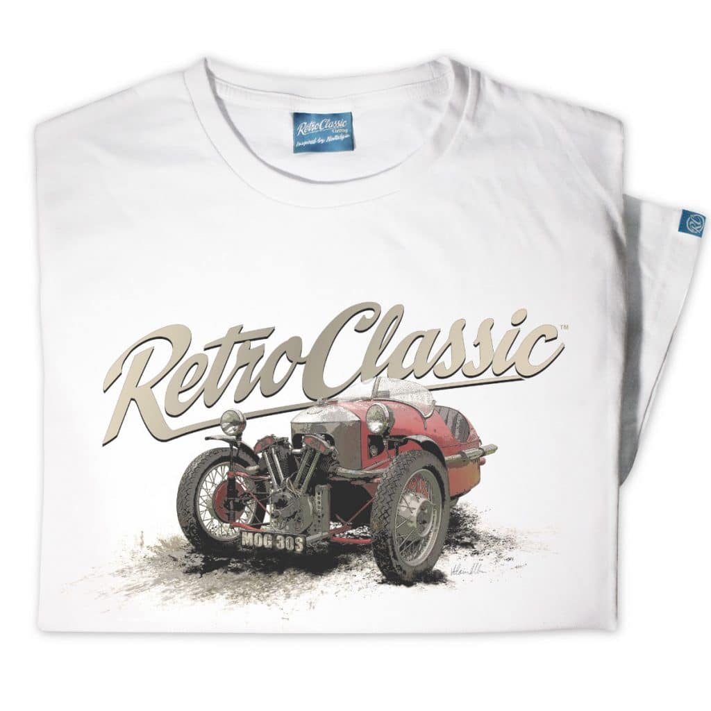 Show your love for classic British motoring — grab your RetroClassic™ Morgan 3 Wheeler T-shirt today.