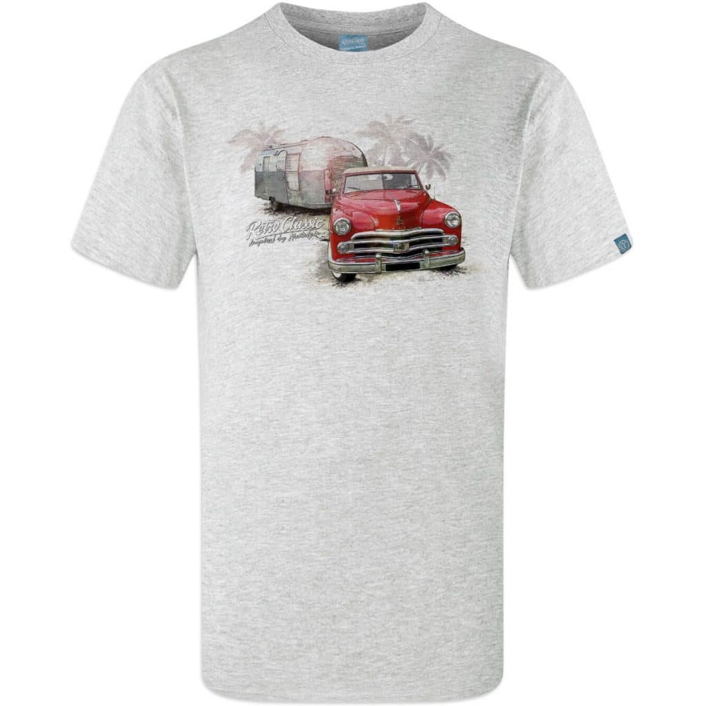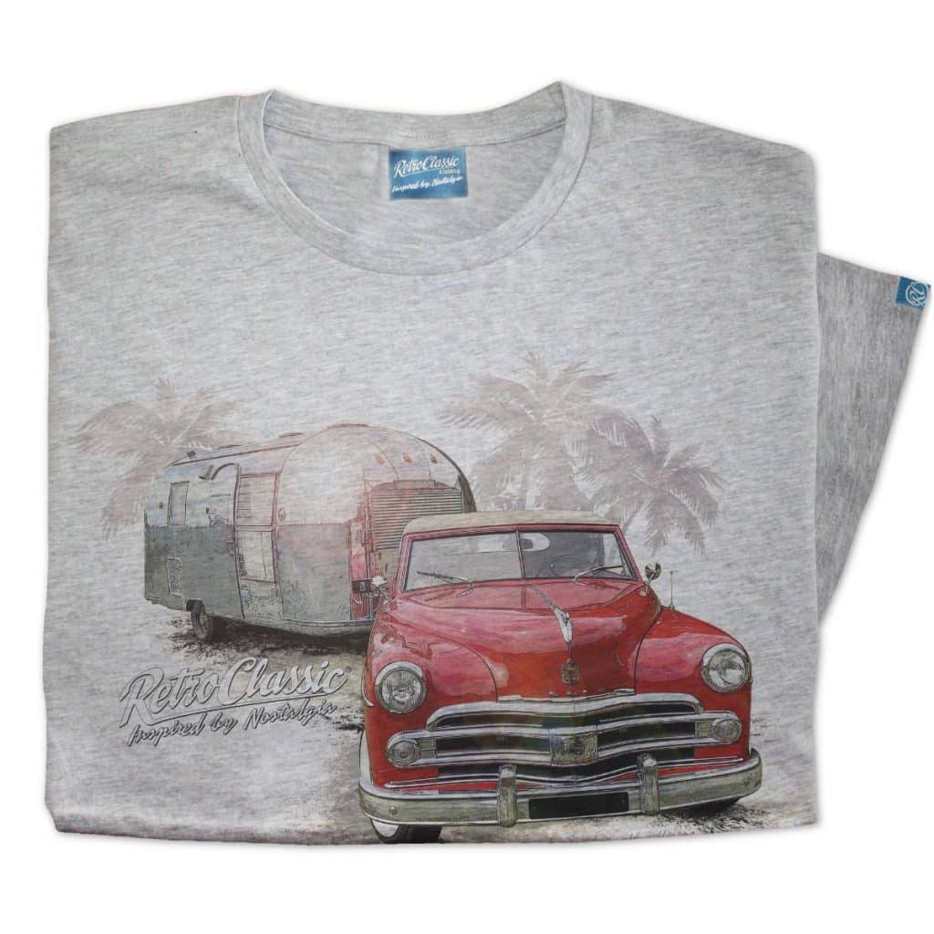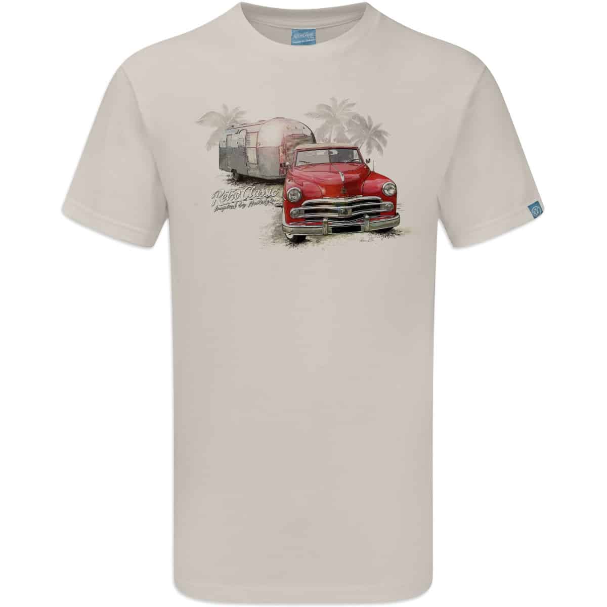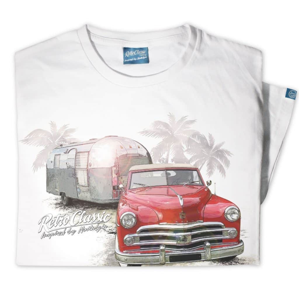 Perfect for fans of classic cars, vintage caravans, and retro road trips, this t-shirt brings together the timeless charm of mid-century American automotive design and lifestyle. A must-have for car show enthusiasts, collectors, and anyone who loves the golden era of motoring.