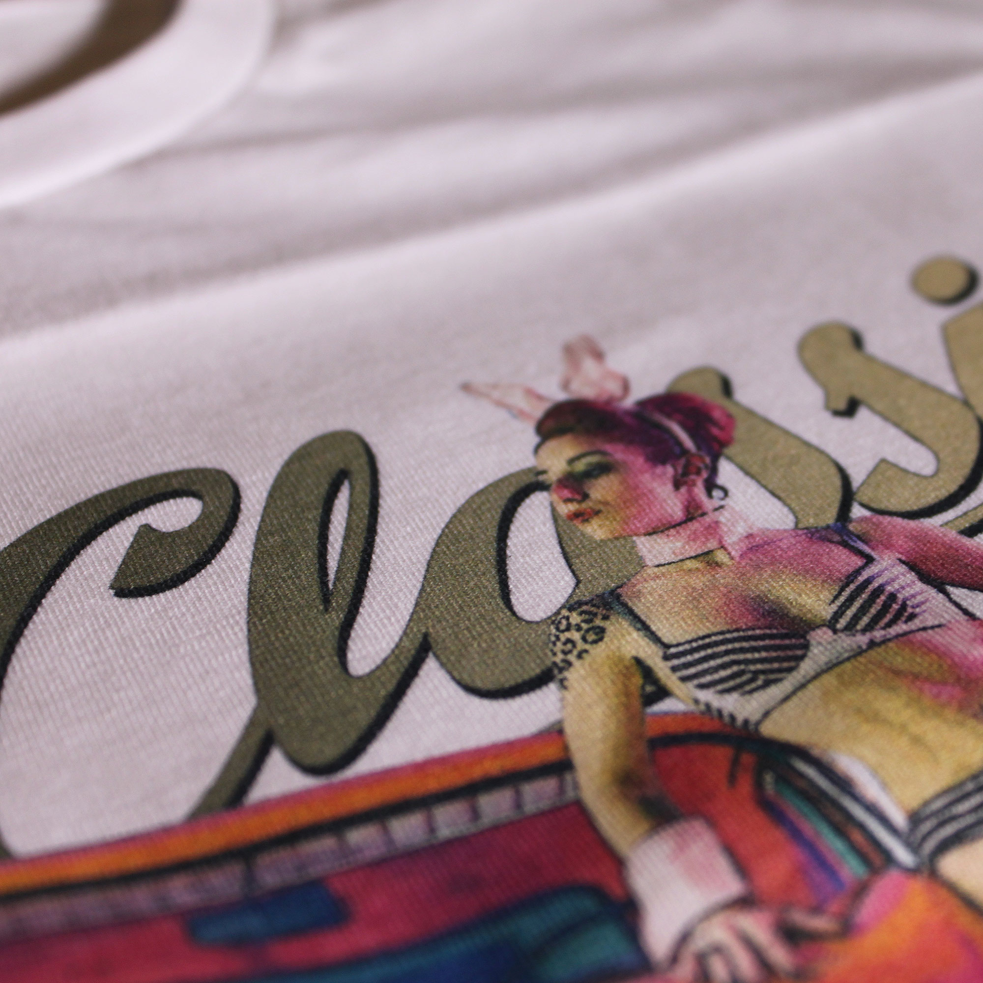 Based on a stunning image captured by Fabio Perotti, this design pays homage to the golden age of automotive and pin-up photography — all printed on ultra-comfortable, premium 100% cotton tees.
