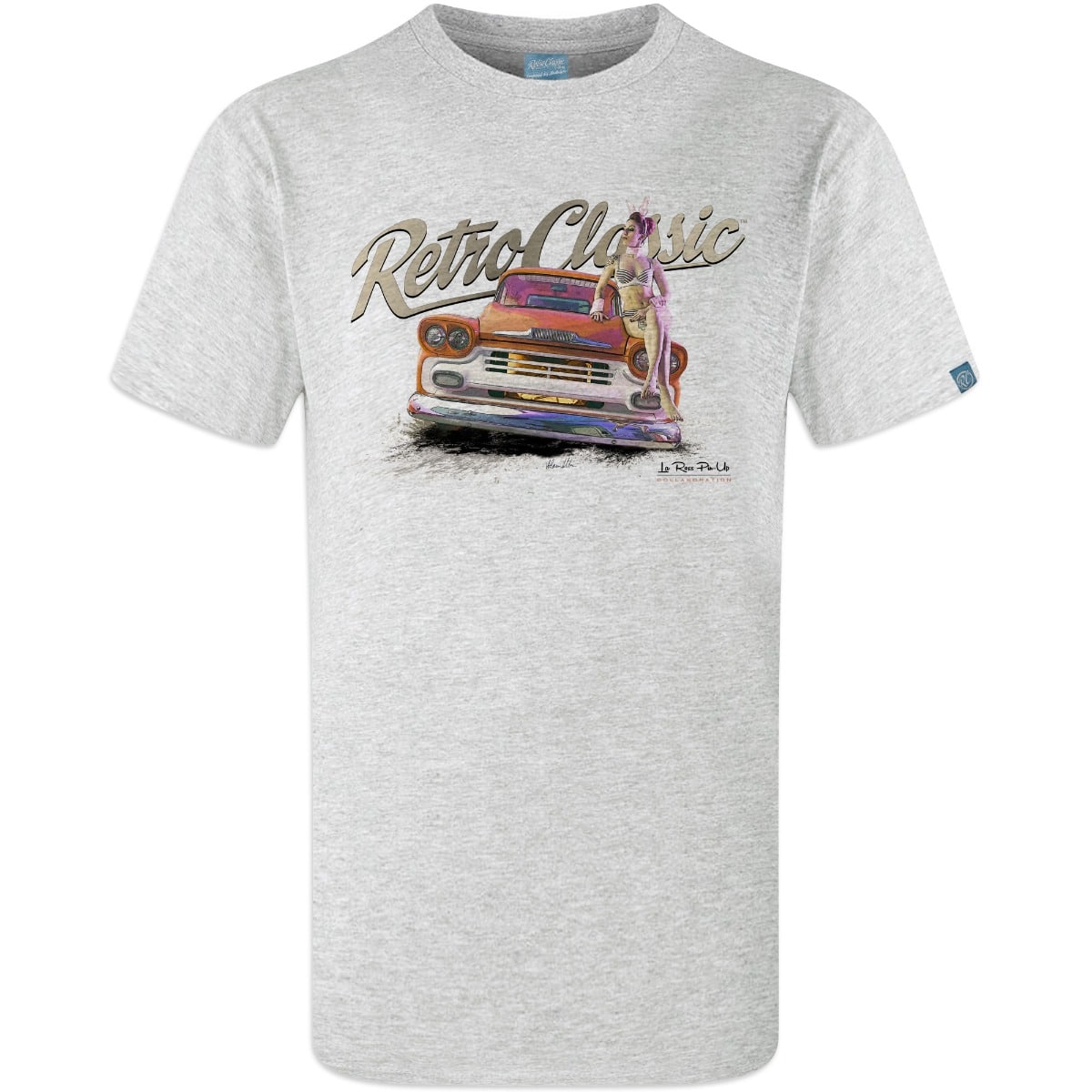 RetroClassic crew neck T-shirt of La Ross Pin-up model and Classic American Pick-up Truck.