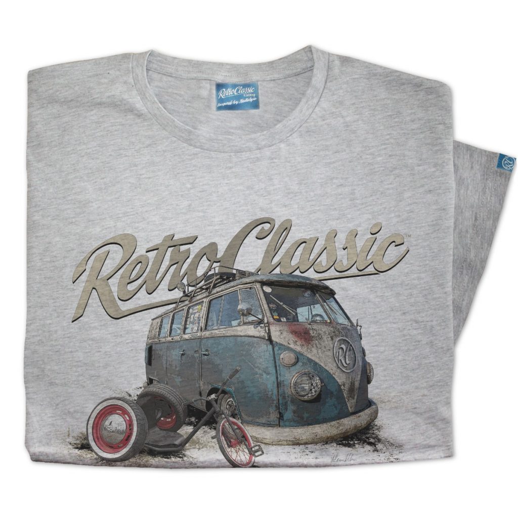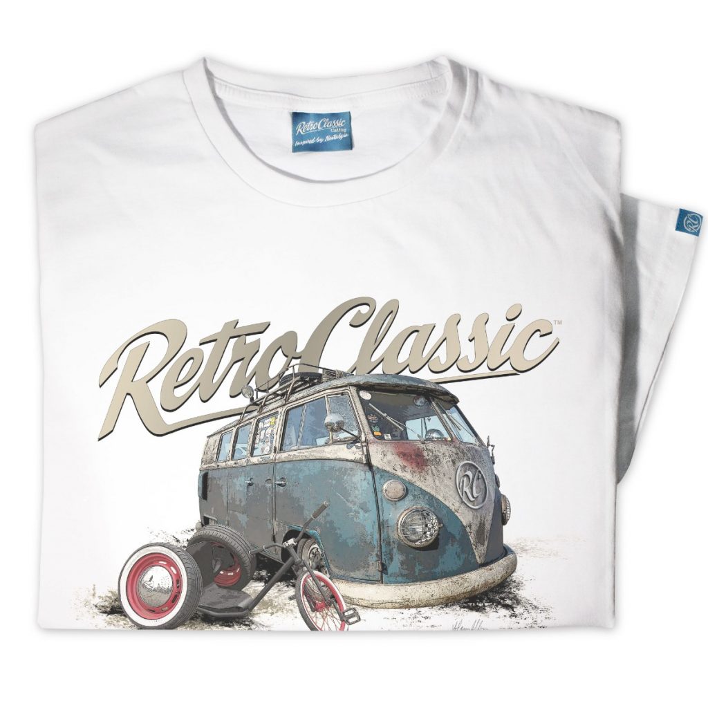 Luke personally requested this design, and after seeing his iconic van and trike, it was a must for the RetroClassic collection. Perfect for camper van enthusiasts, drift trike fans, and retro lifestyle lovers, this t-shirt combines rugged automotive charm with timeless style.