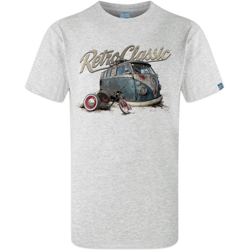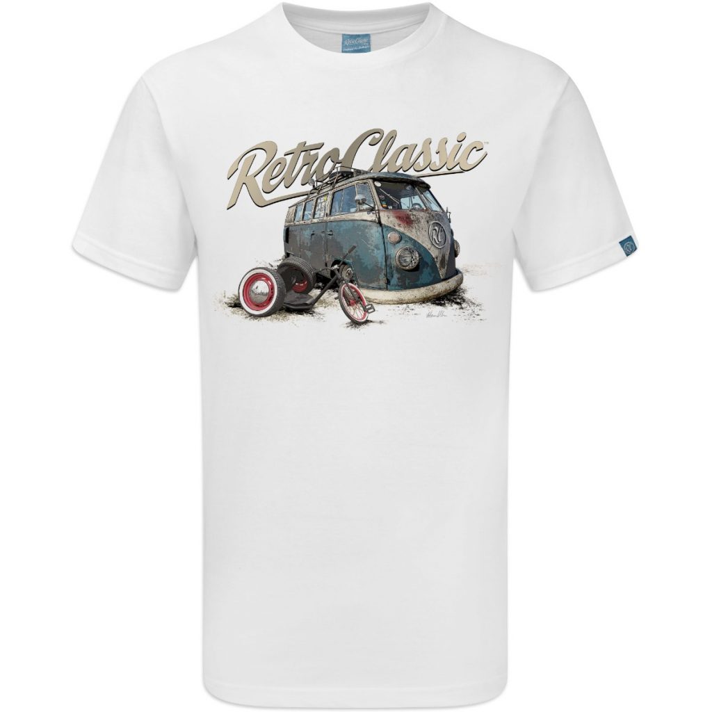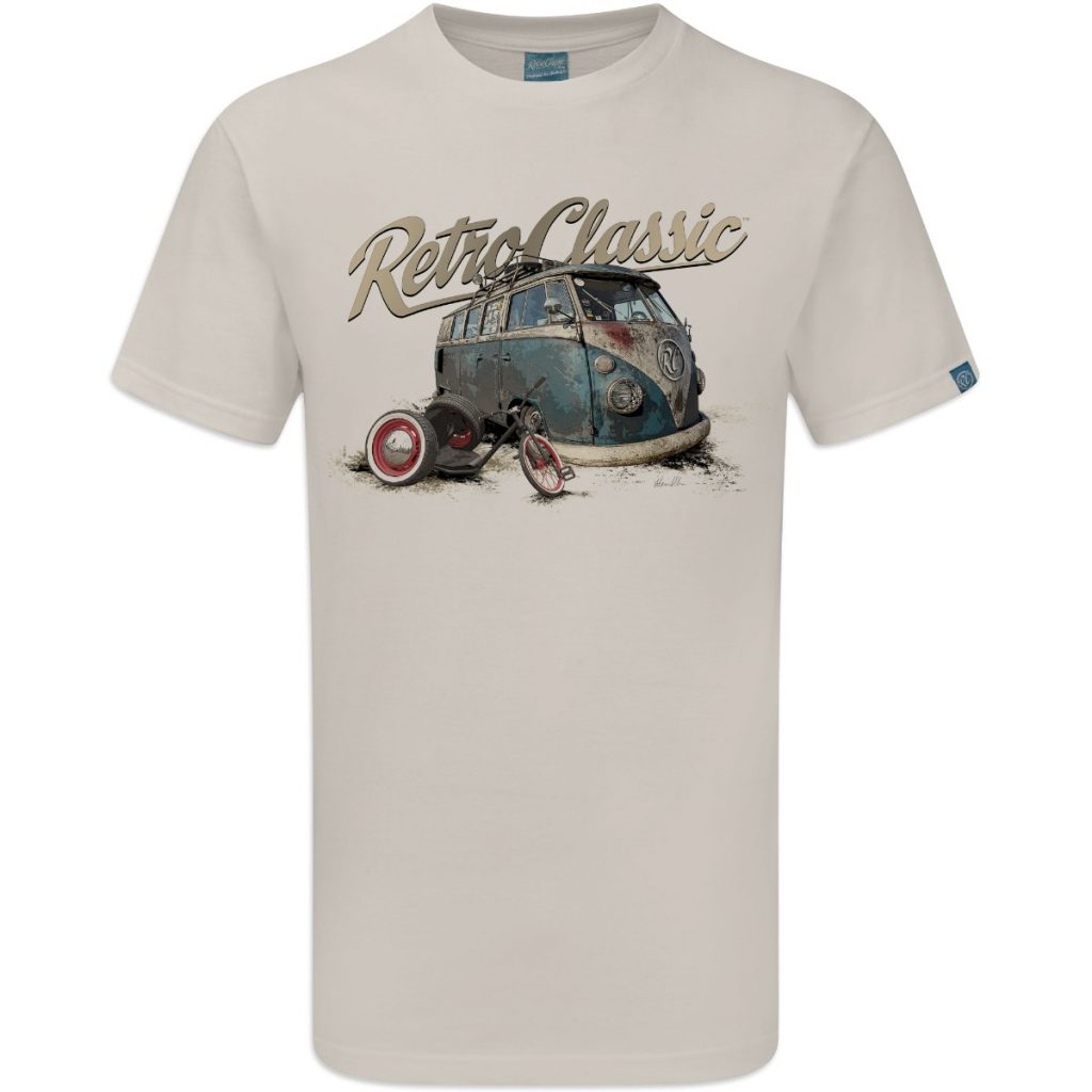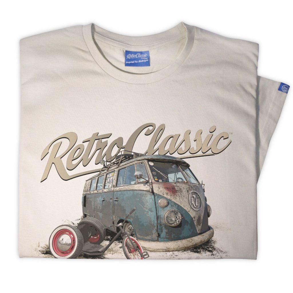 Crafted from 100% cotton, the t-shirt offers soft comfort, durability, and a flattering fit, and is available in White, Sand, and Heather Grey. Ideal for car shows, casual wear, or adding to your RetroClassic collection.