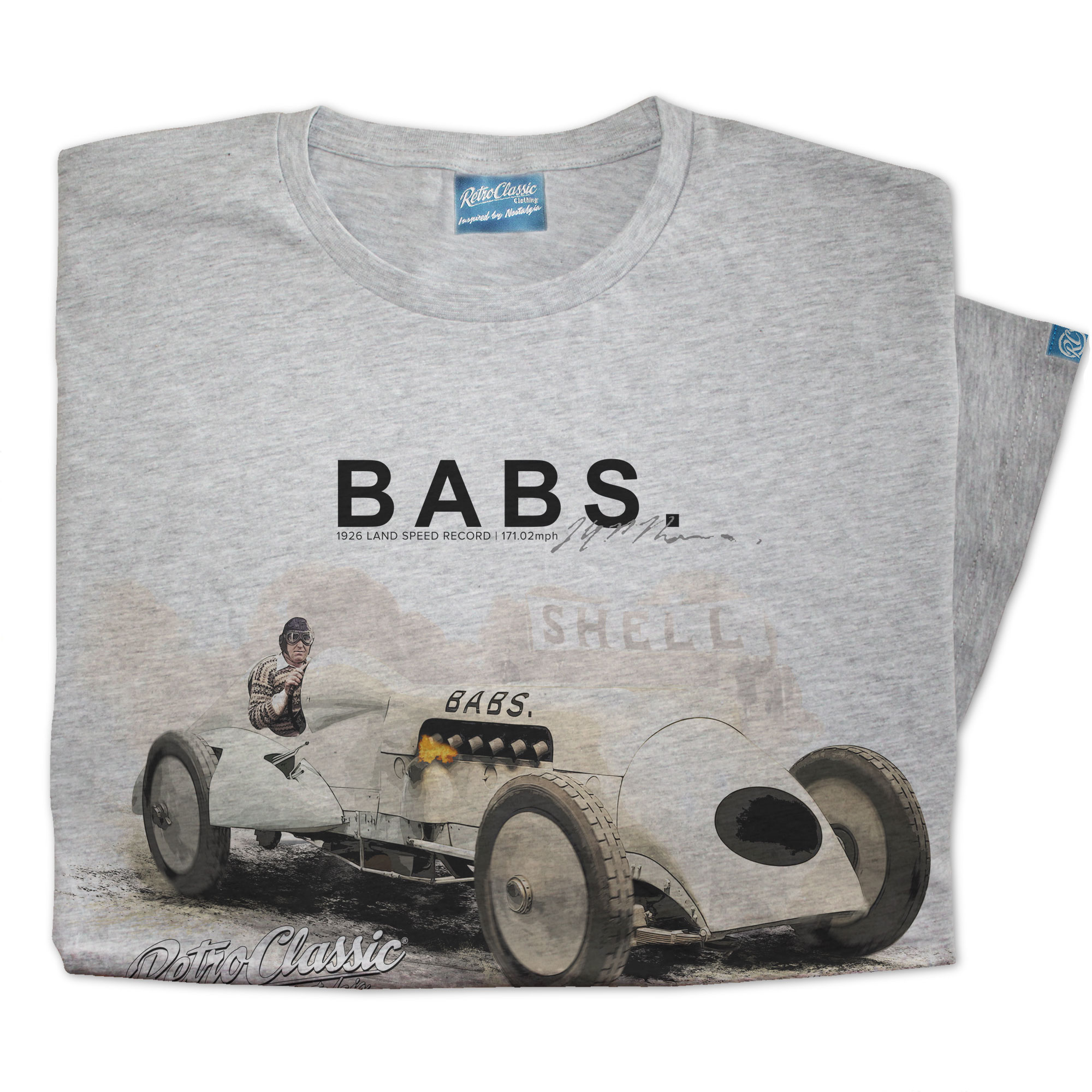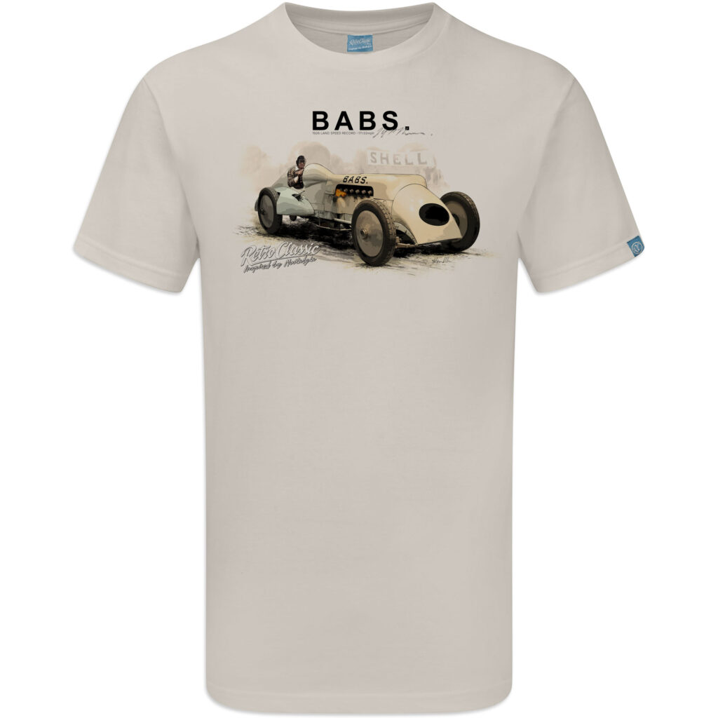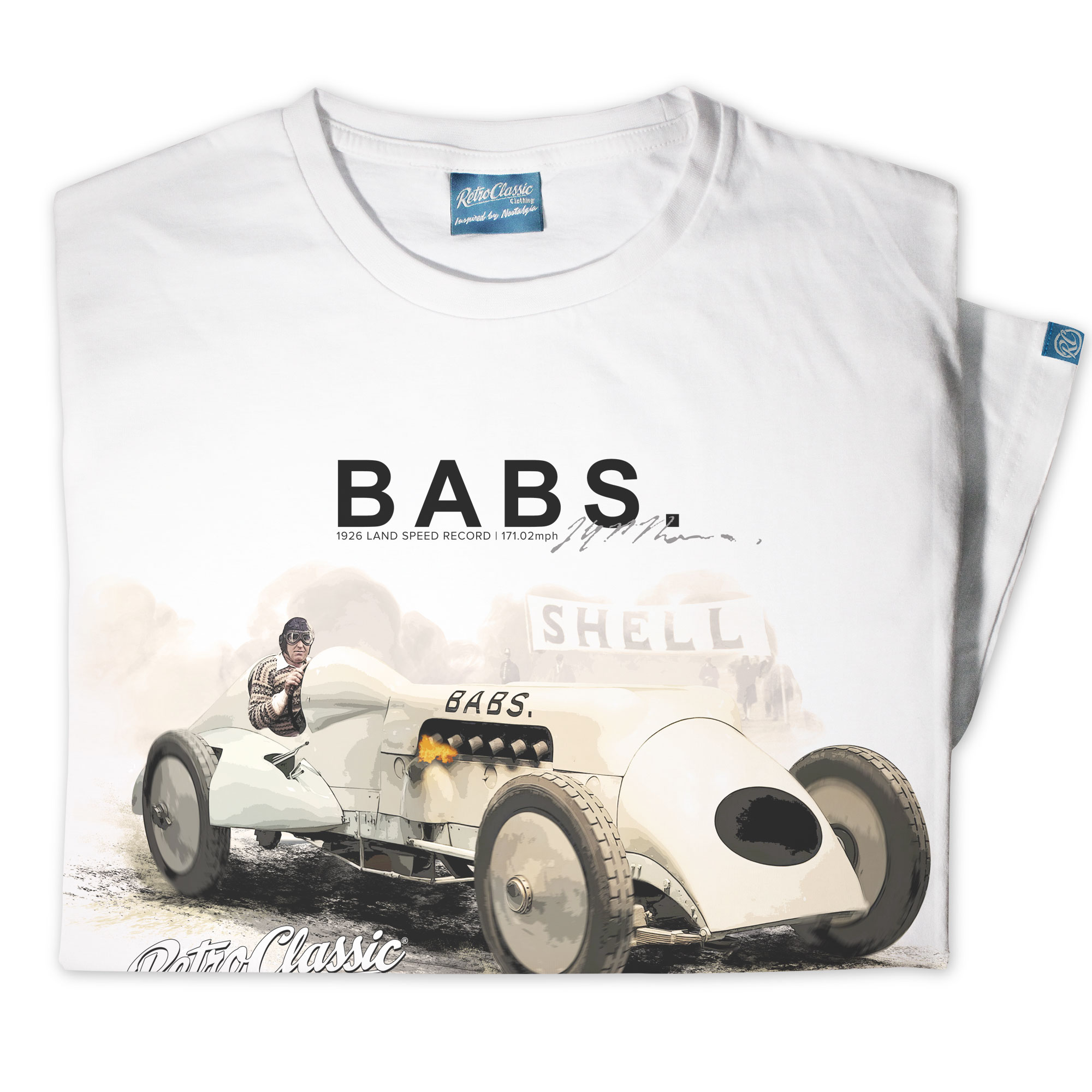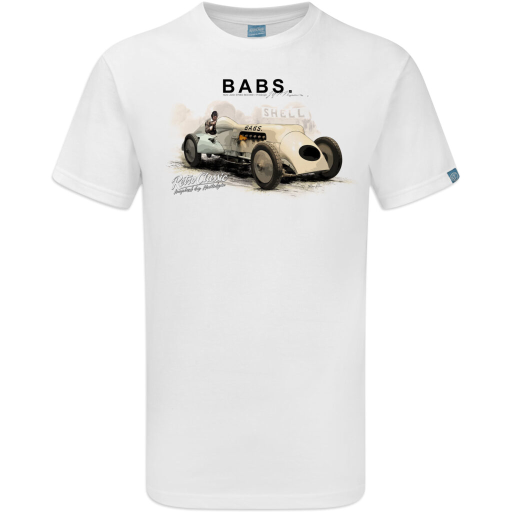 RetroClassic™ BABS land speed record t-shirt celebrating the 1926 world record by J.G. Parry-Thomas. Premium cotton motorsport heritage tee.