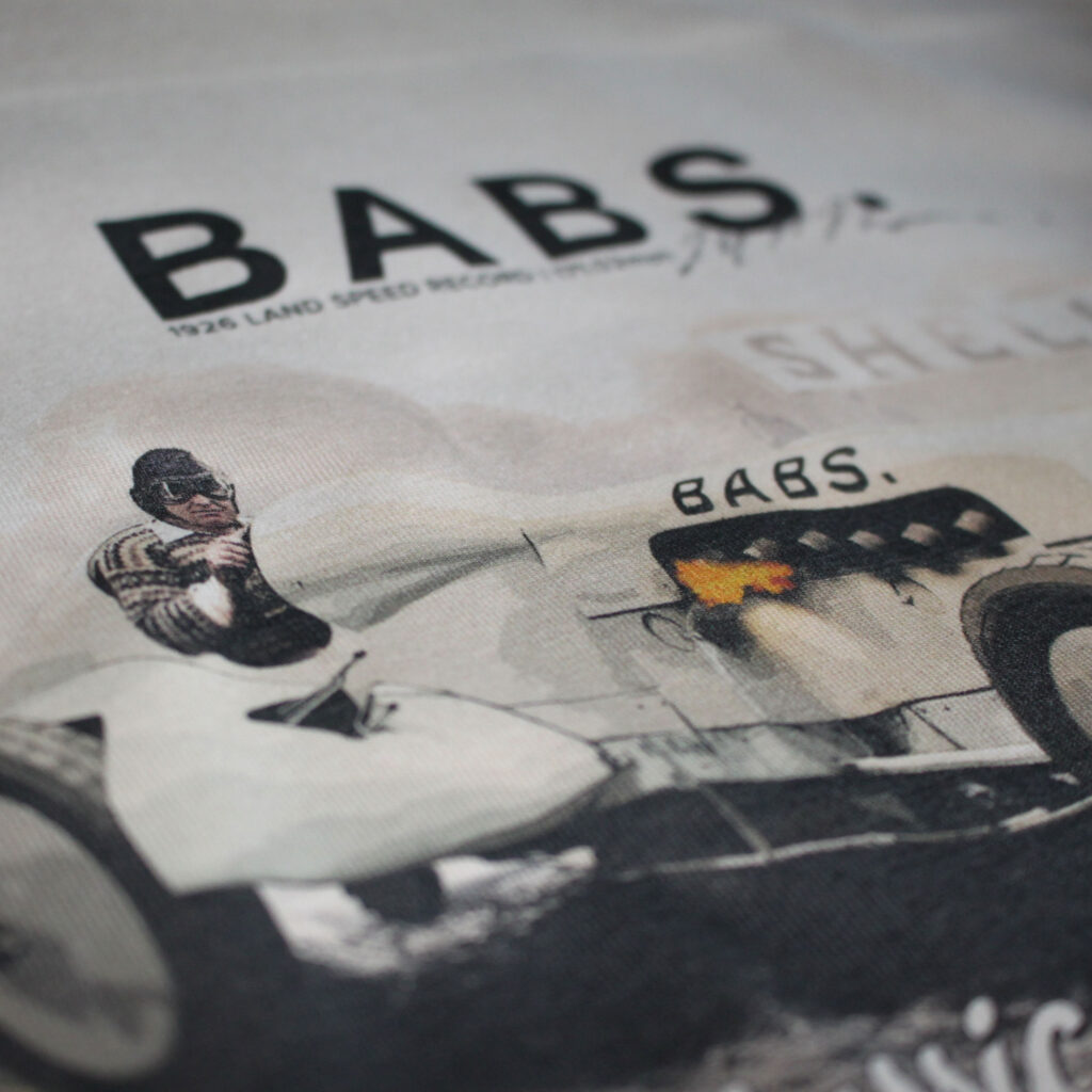 Today, BABS stands as a symbol of innovation, bravery, and the relentless pursuit of speed — and this RetroClassic™ design captures that legacy in a bold, vintage-inspired graphic.