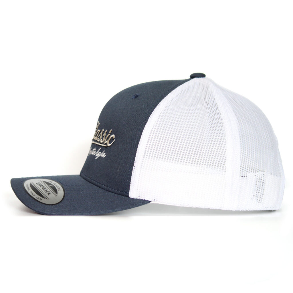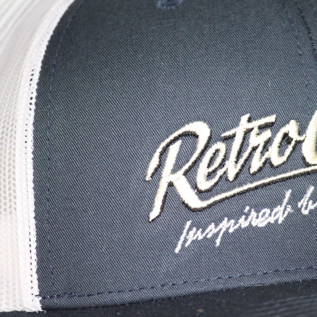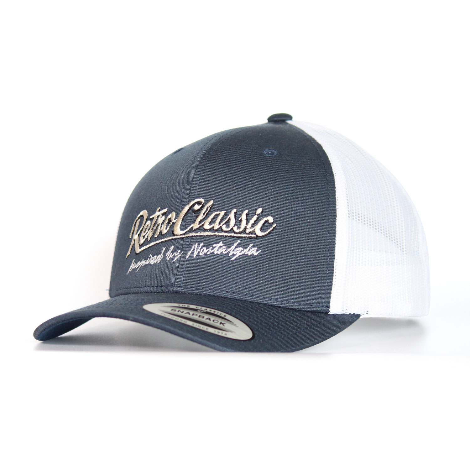 RetroClassic Trucker Cap – “Inspired by Nostalgia” Embroidered Logo – Navy/White