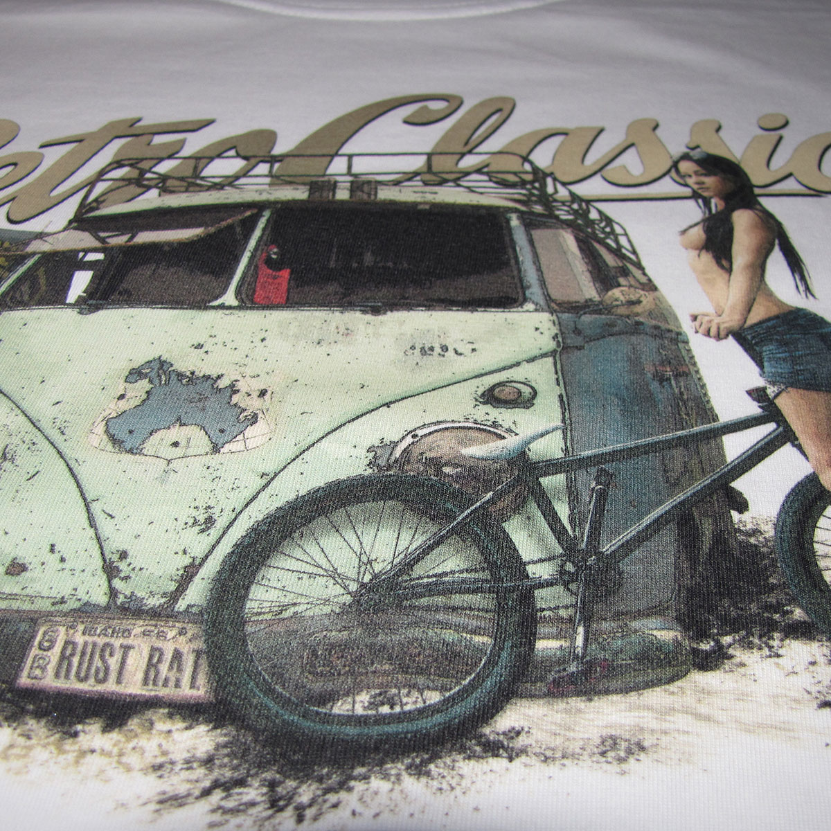 The artwork blends weathered campervan vibes, BMX energy, and RetroClassic’s signature distressed style, creating a statement tee that celebrates freedom, motion, and alternative culture. Printed on premium 100% cotton, this t-shirt is built for comfort while delivering unmistakable attitude.