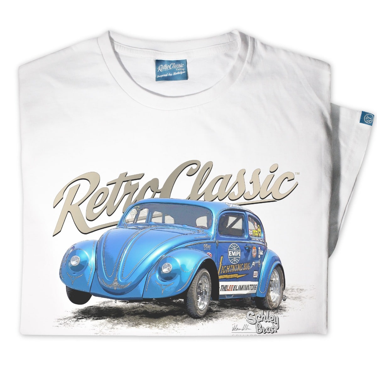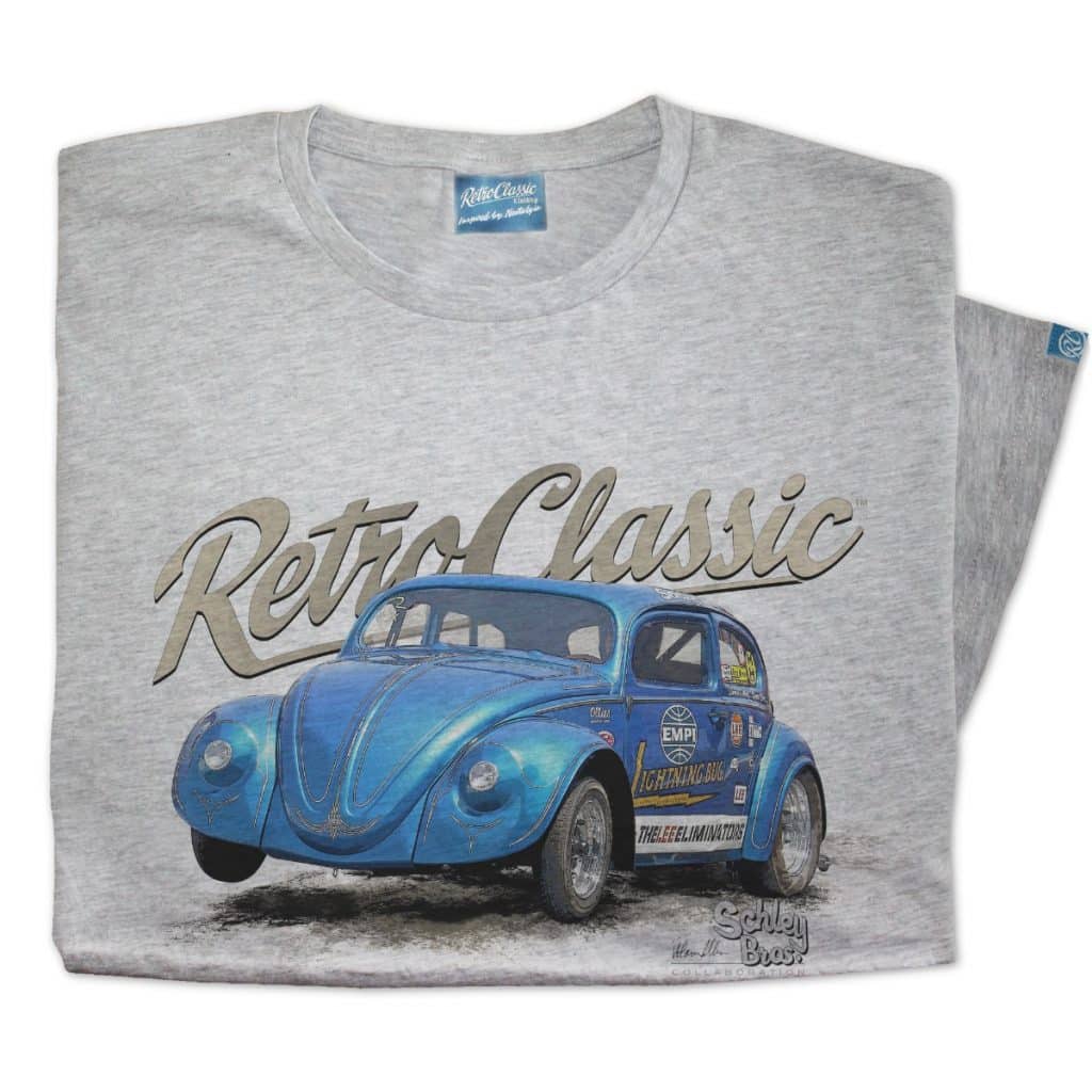Celebrate drag racing history with the RetroClassic® Schley Bros Lightning Bug II T-Shirt – an officially approved design honouring one of the most legendary Beetles ever built. RetroClassic® are the only approved company by the Schley Bros to offer authentic Lightning Bug tees, making this a true collector’s piece for drag racing and motorsport enthusiasts.