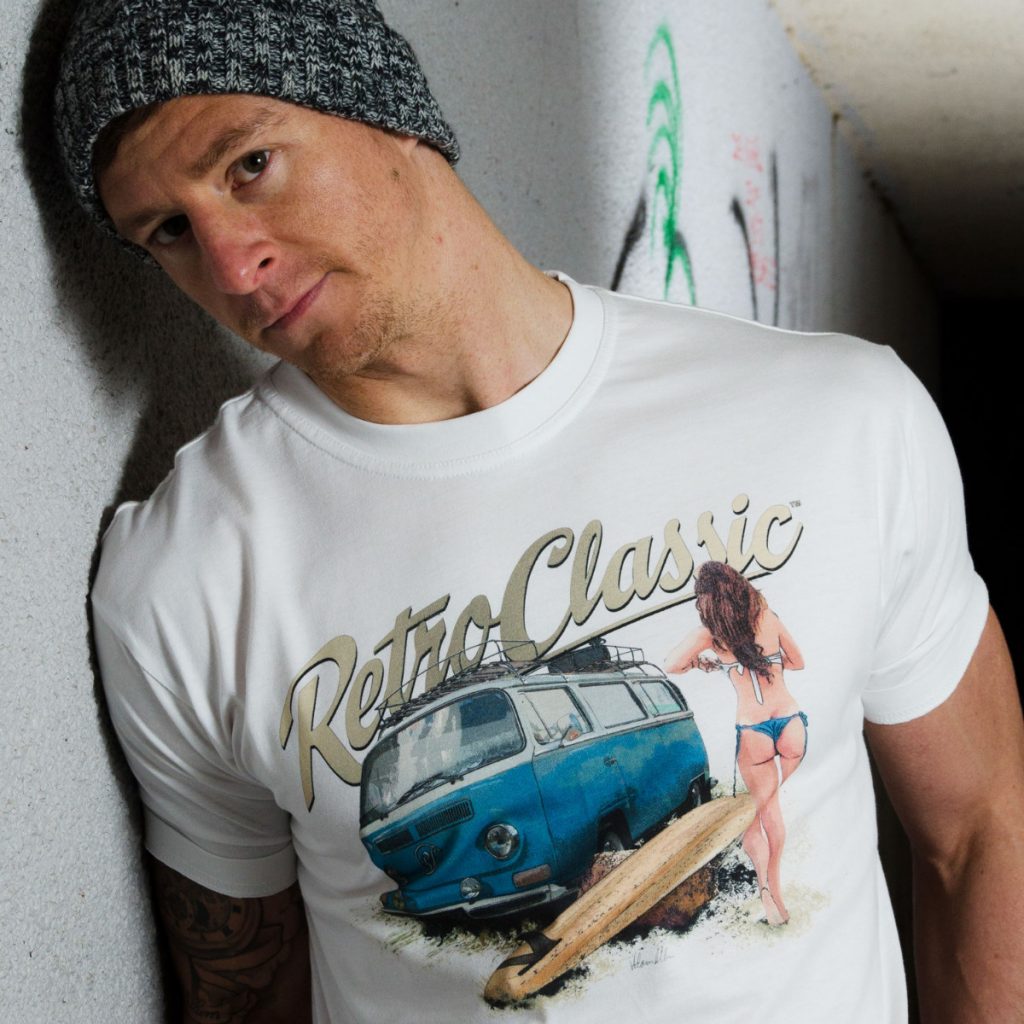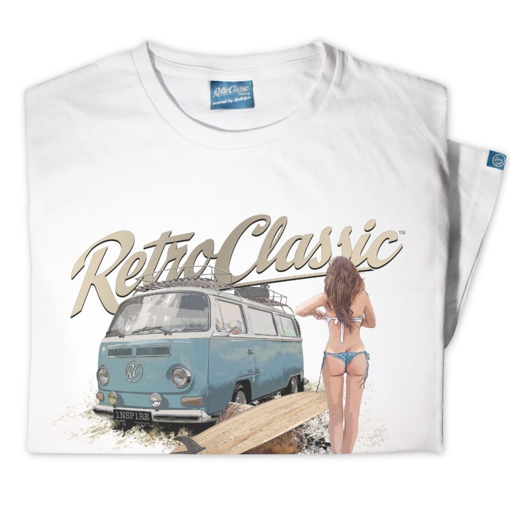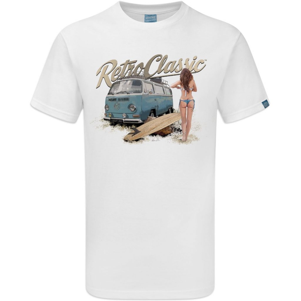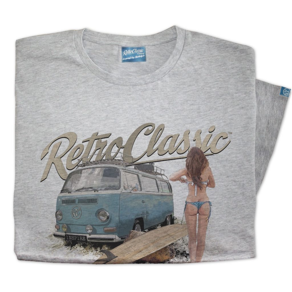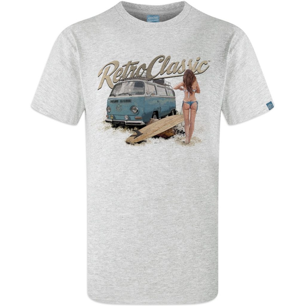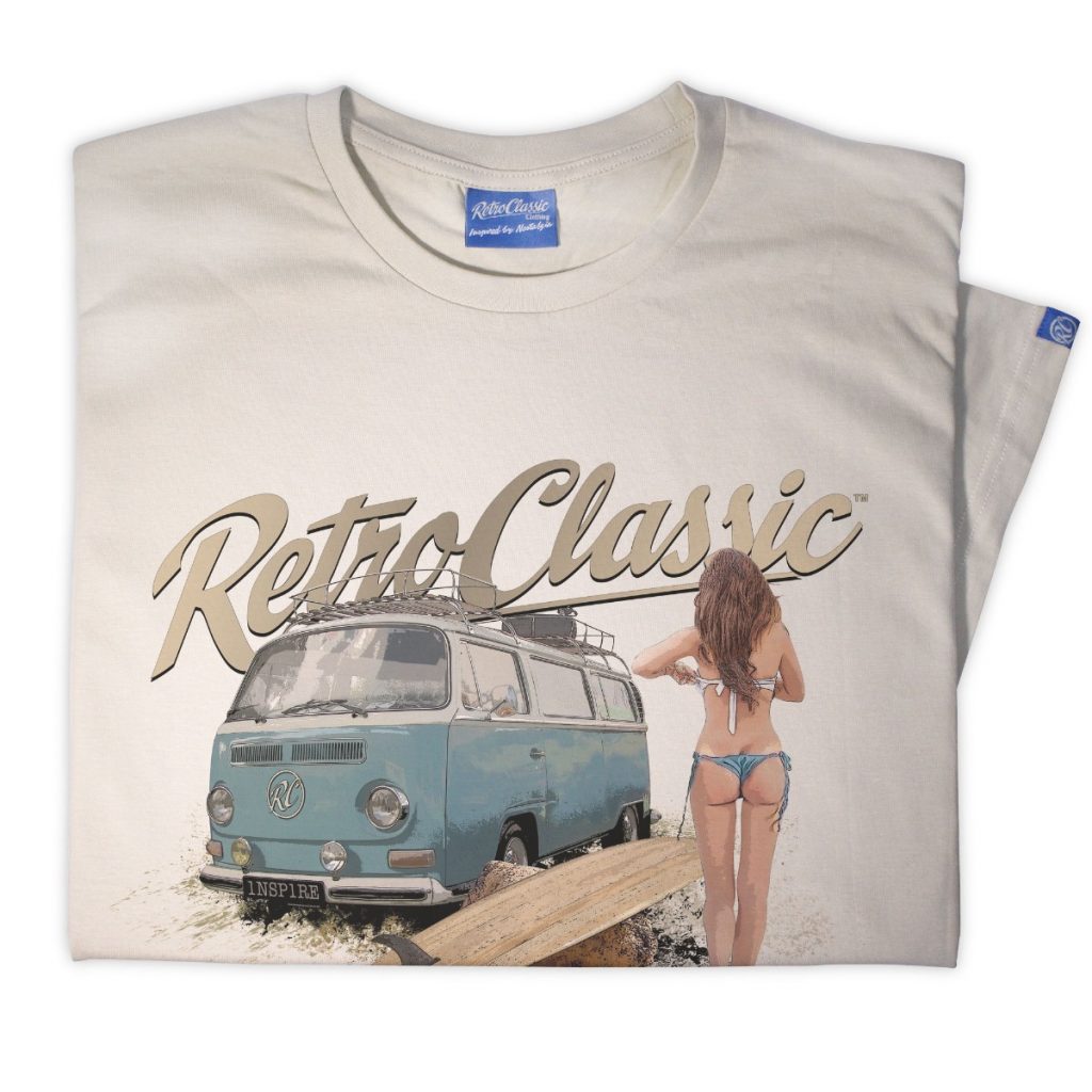 This RetroClassic„ T-shirt is the very best quality featuring a printed gritty graphic representation of a Retro Bay Window Camper – one of the most iconic vehicles on the road. Featuring a design that for many of us would like to live for! Picture the scene: camper’s parked, the sun shining, you have had a surf and the sight of a beautiful, sexy, surfer chick walking towards you – heaven!