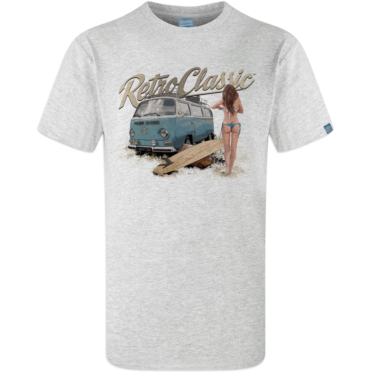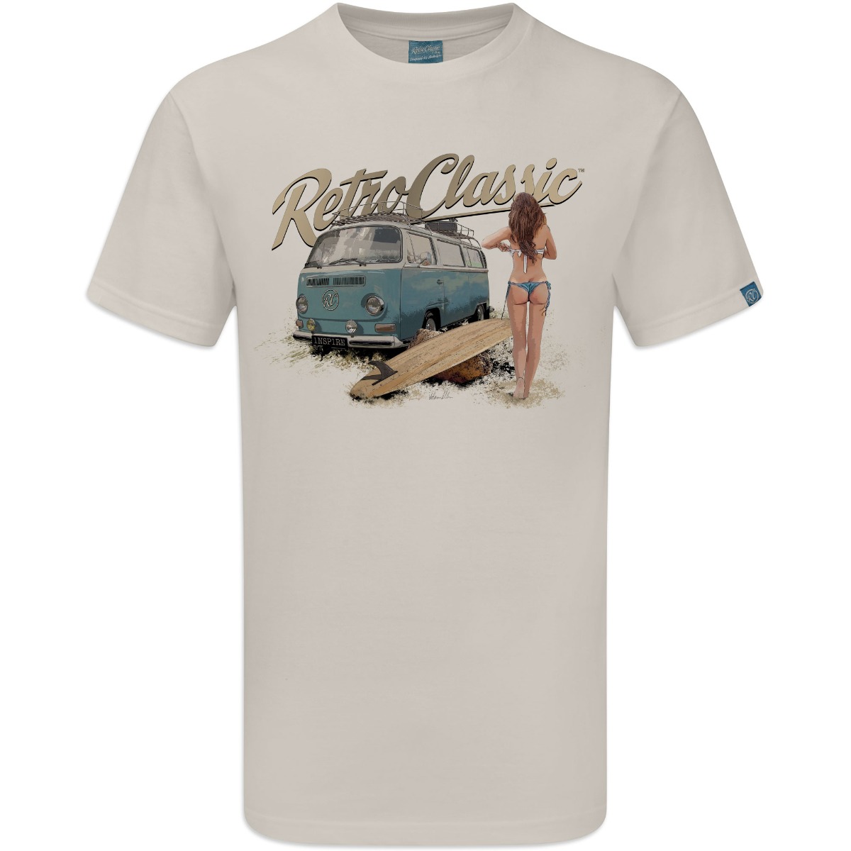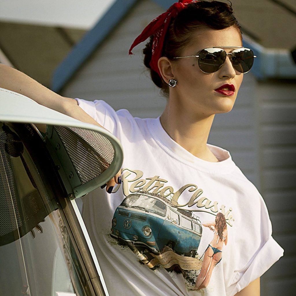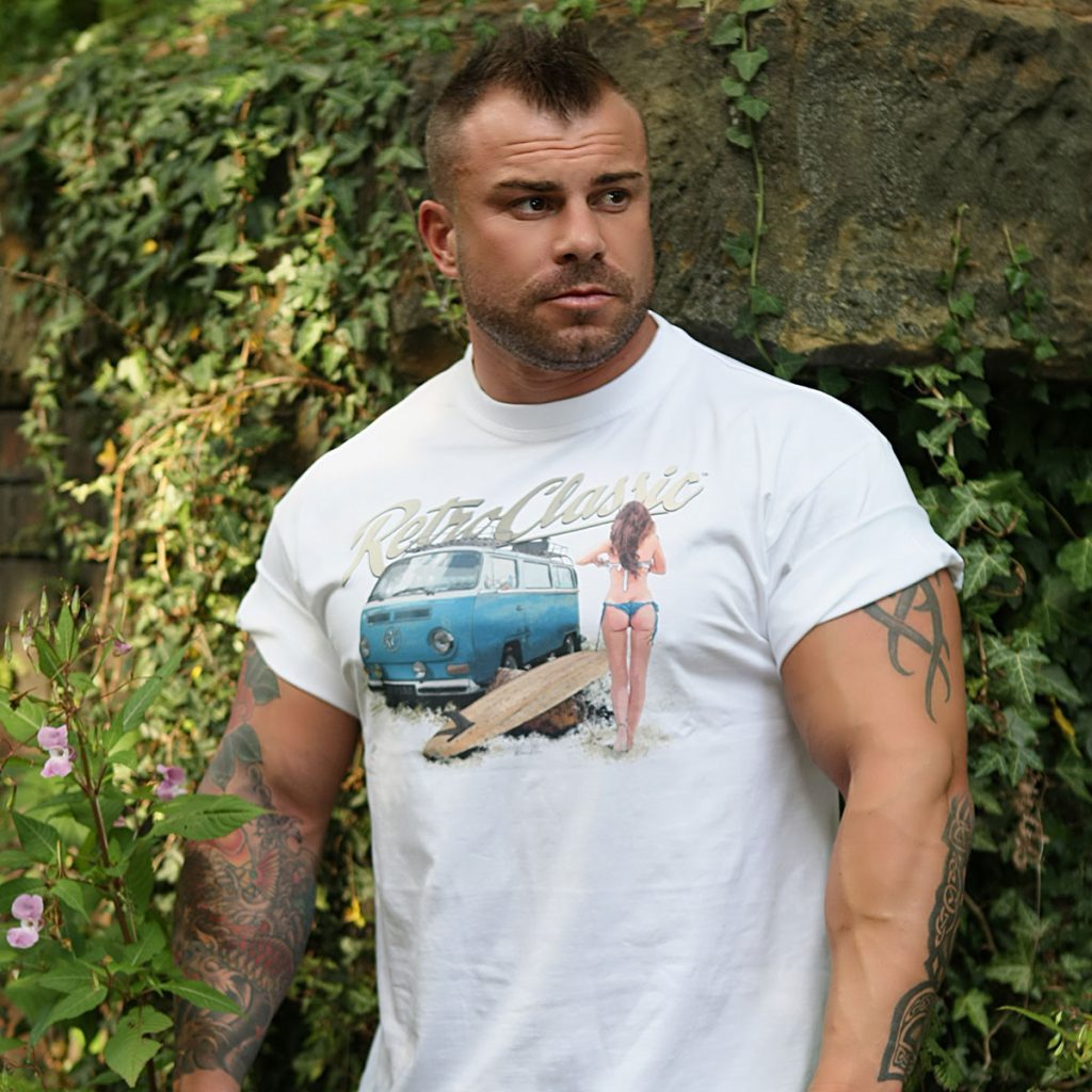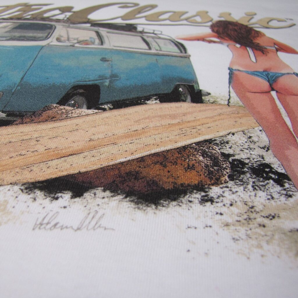 This RetroClassic„ T-shirt is the very best quality featuring a printed gritty graphic representation of a Retro Bay Window Camper – one of the most iconic vehicles on the road. Featuring a design that for many of us would like to live for! Picture the scene: camper’s parked, the sun shining, you have had a surf and the sight of a beautiful, sexy, surfer chick walking towards you – heaven!