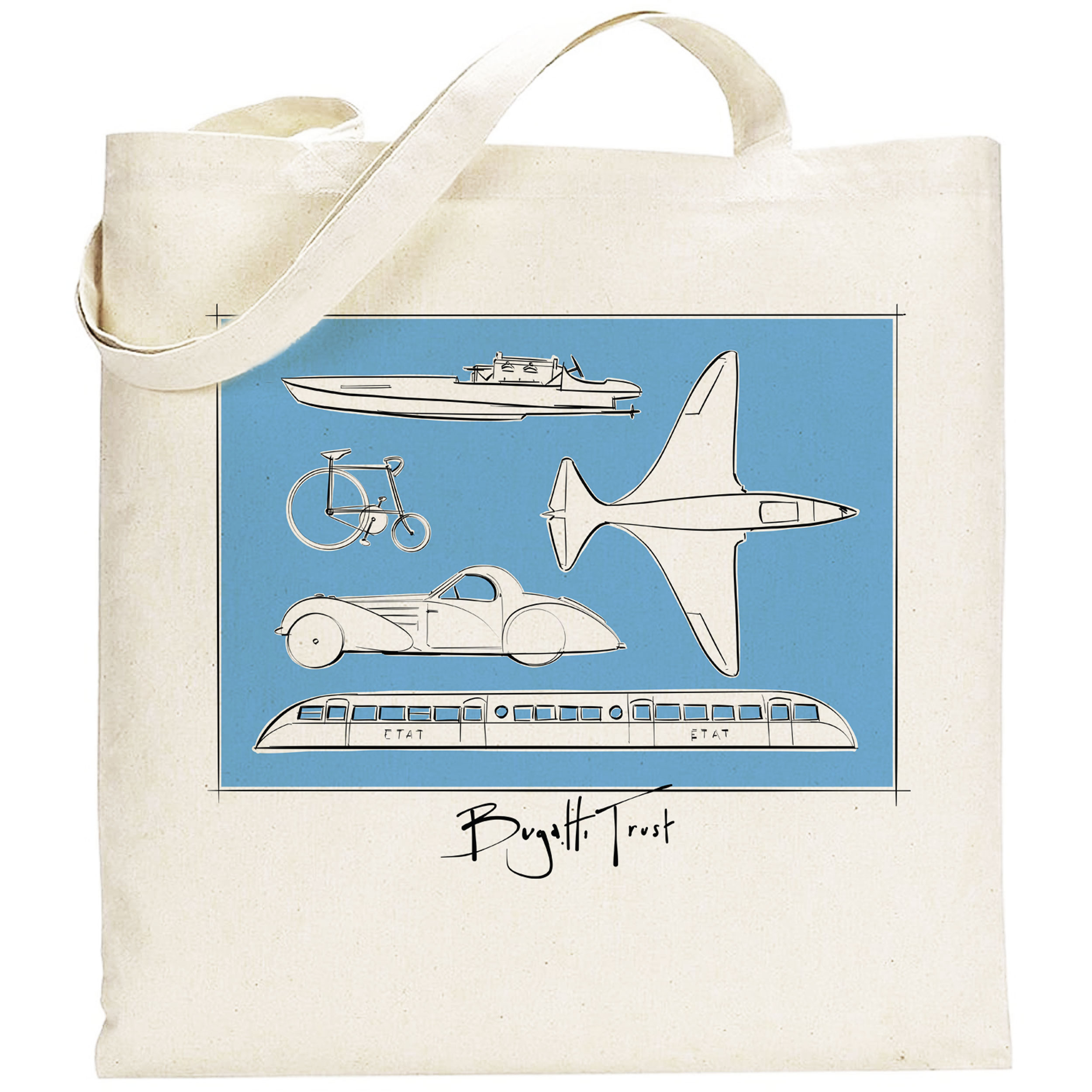By purchasing this tote bag, you are directly supporting The Bugatti Trust in preserving and celebrating the heritage of Bugatti’s legendary engineering and racing legacy.