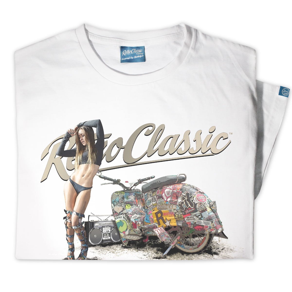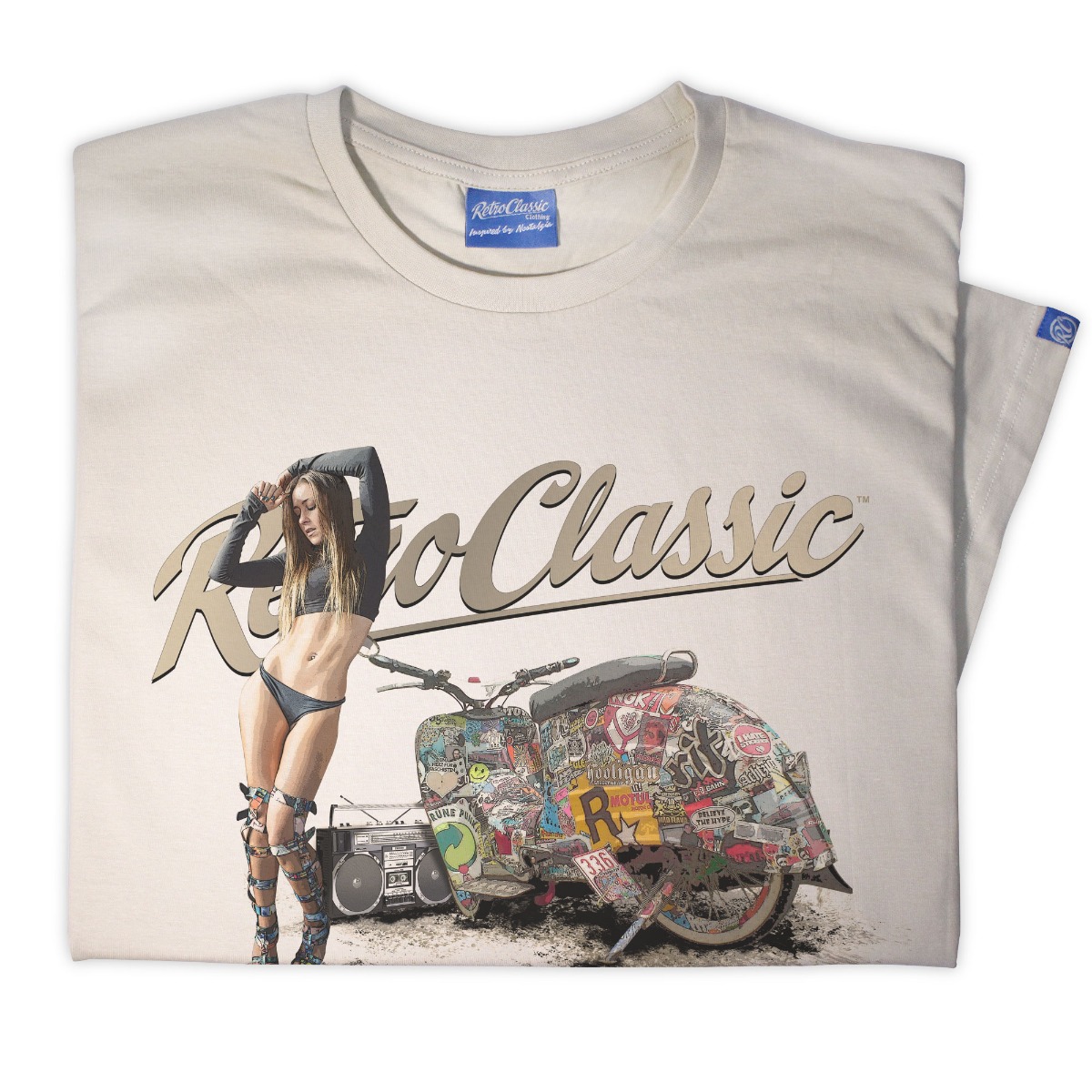 The Rat Crew Simson Motorcycle and Model Samantha Ronan Mens T-shirt