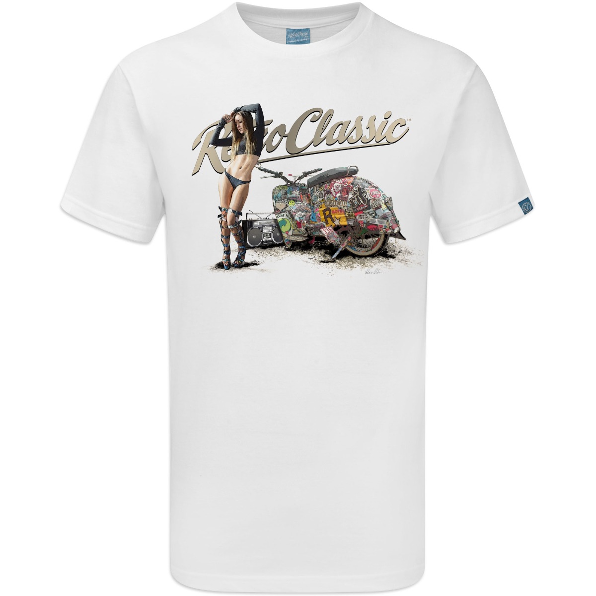 RetroClassic„ The Rat Crew Simson Motorcycle and Model Samantha Ronan Mens Crew neck T-shirt