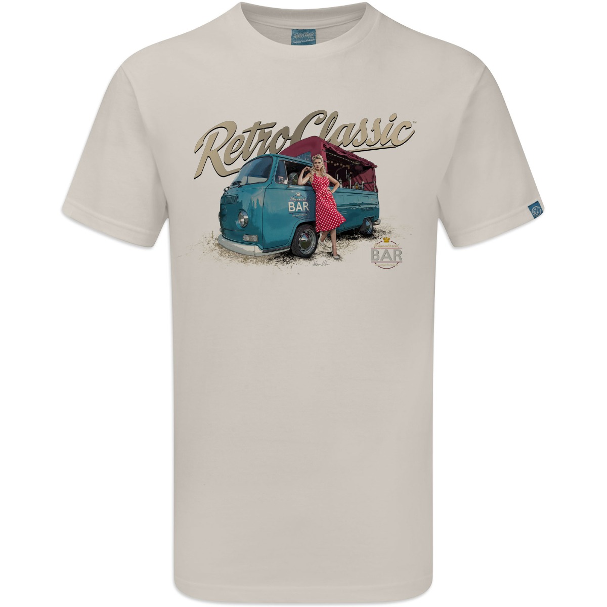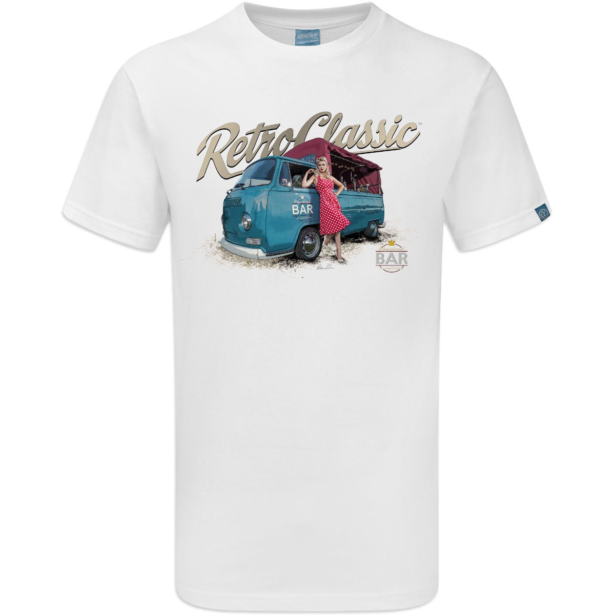 This RetroClassic„ T-shirt is the very best quality, featuring a design Collaboration between us and the Wagonkered Bar, a unique fully licensed 1970 low light Bay Window camper bar. Nick (owner of the Wagonkered Bar) very kindly gave us permission to use he’s promotional images, taken by Neil Bremner as RetroClassic t-shirt designs. We are honoured with this collaboration, becasue not only are the pictures by Neil are amazing, they also include Lousia Marie a stunning model from Somerset and the Wagonkered Bar is fun, unique, different and available to hire!