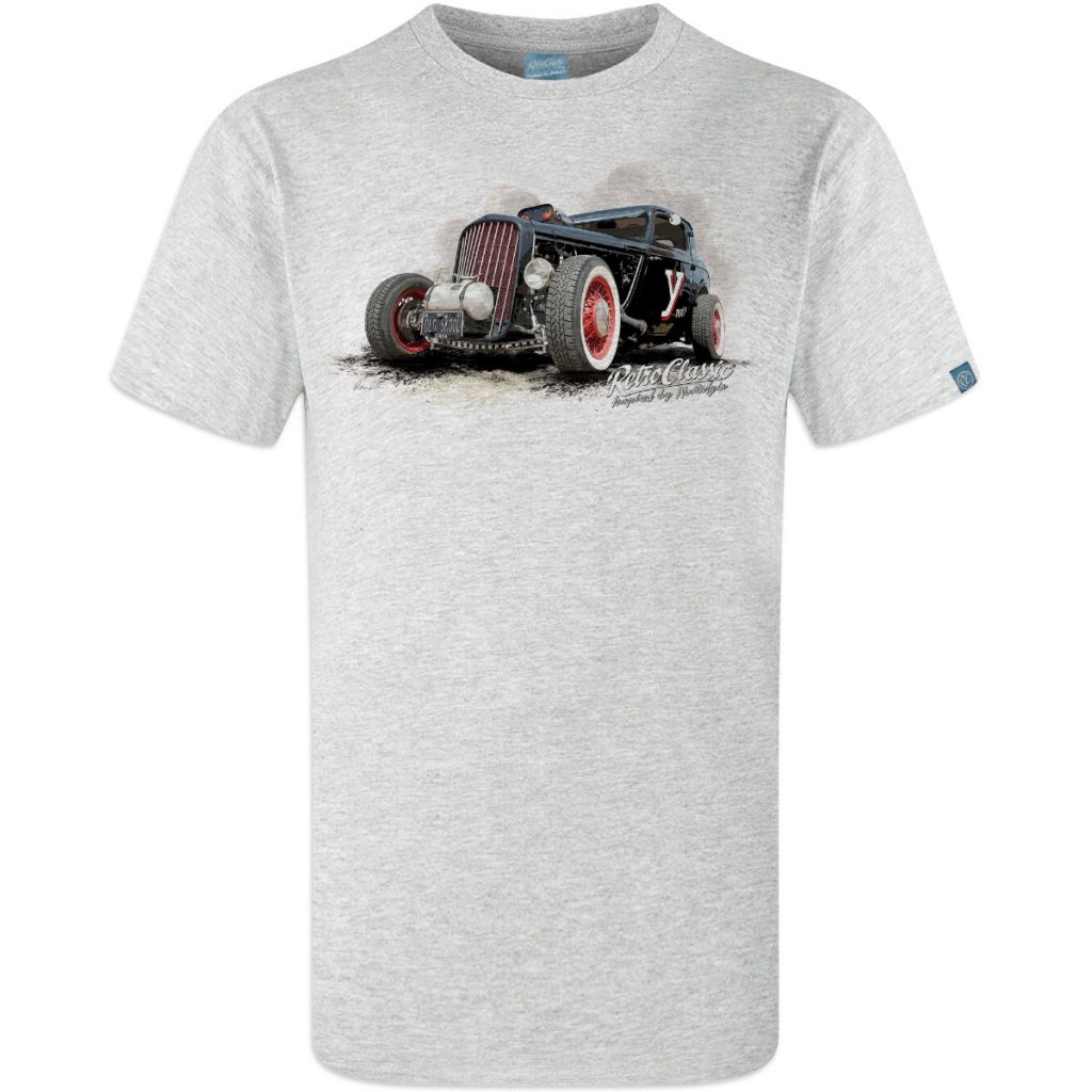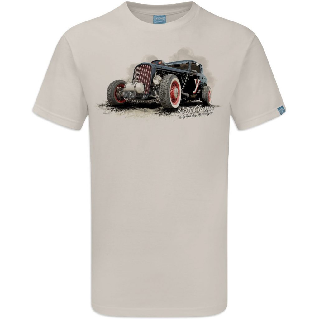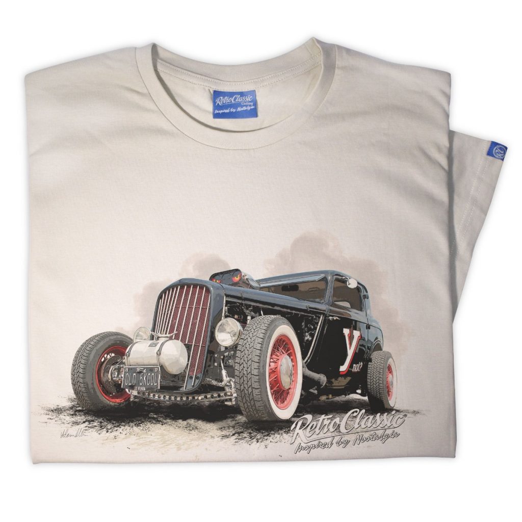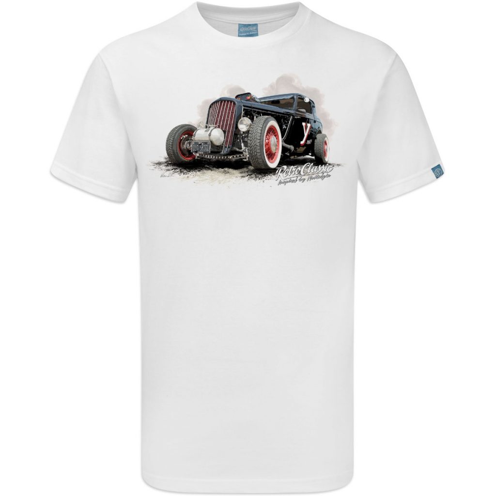 RetroClassic™ Ynot ’37 Ford Model Y hot rod t-shirt featuring Peter Kent’s 4.6ltr old skool custom build. Premium cotton classic car tee